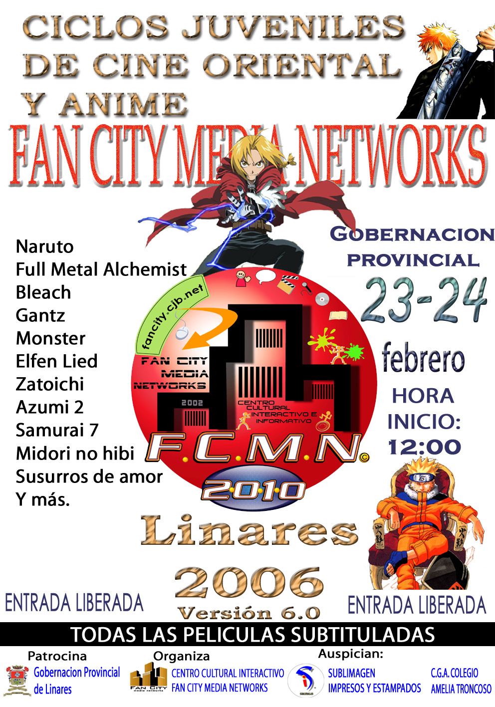 Fueron 3 dias de animé. OVAs, Series y peliculas en la Gobernación Provincial de Linares.