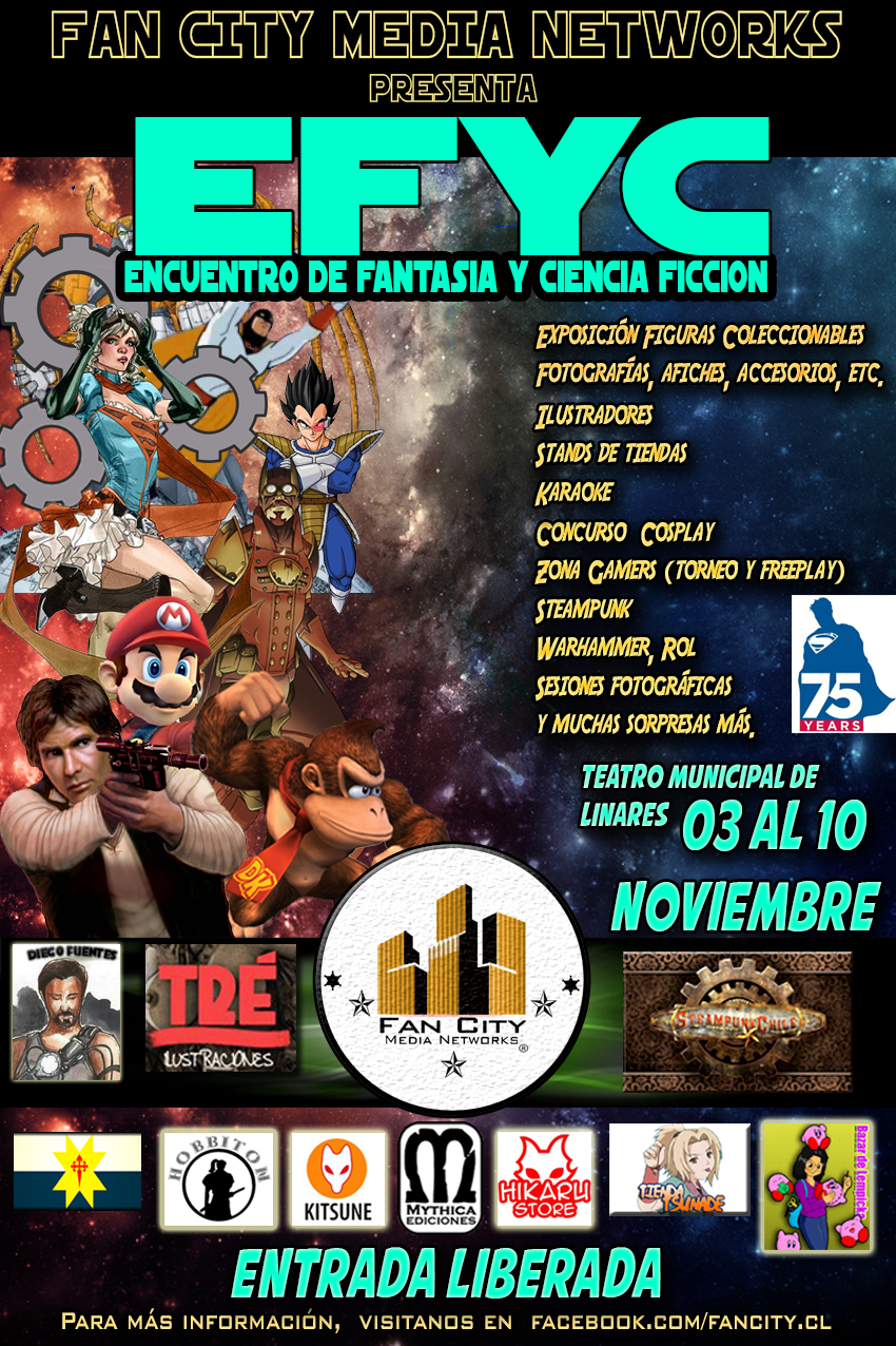 El primer Encuentro de Fantasía y Ciencia Ficción de Linares, abreviado como EFYC, es el evento “meta” de Fan City. Desde los primeros años, sus integrantes soñaron con un evento que combinase todos los segmentos de interés del mundo geek, freak y ñoños en general.